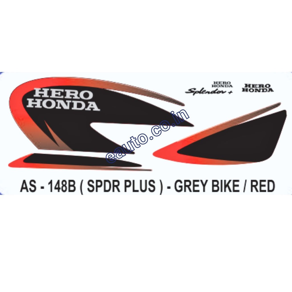 Graphics Sticker Set for Hero Honda Splendor Plus | Grey Vehicle | Red Sticker | Both Sides