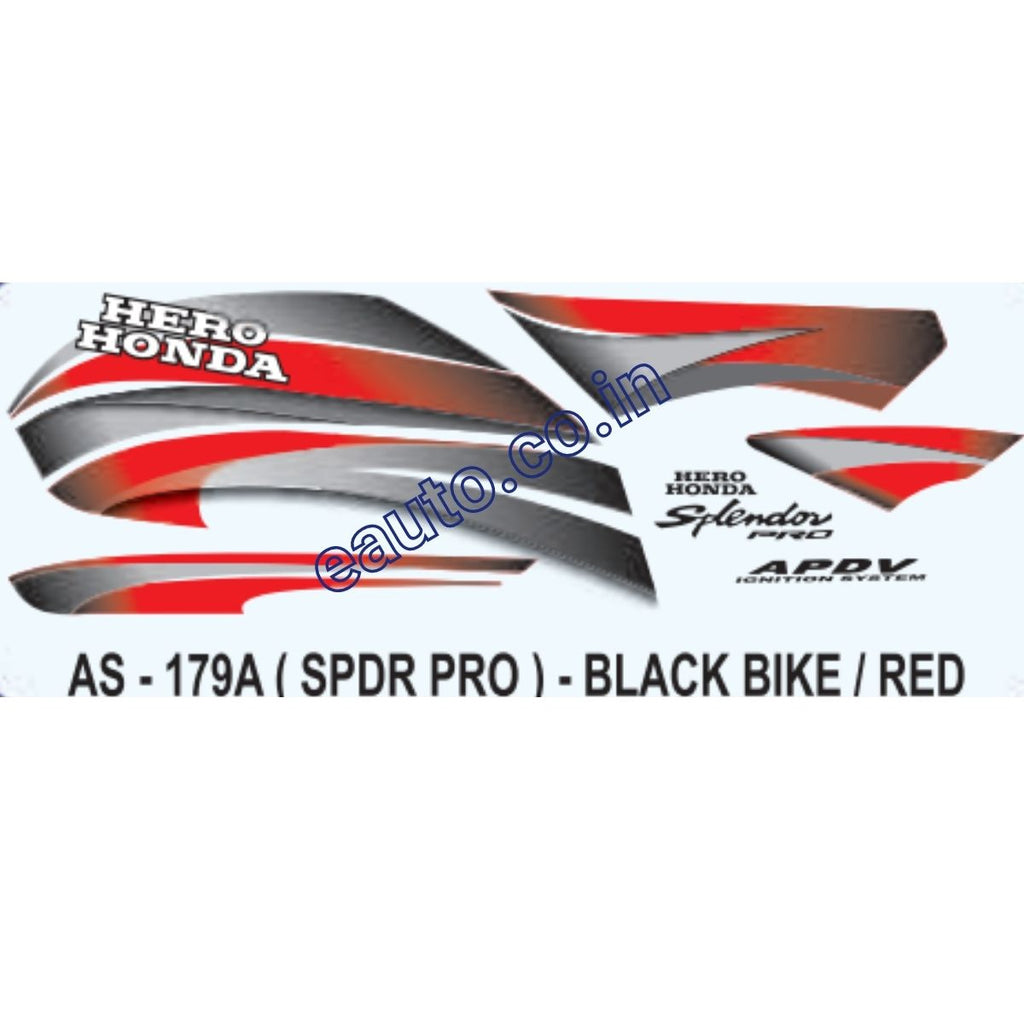 Graphics Sticker Set for Hero Honda Splendor Pro | Black Vehicle | Red Sticker | Both Sides