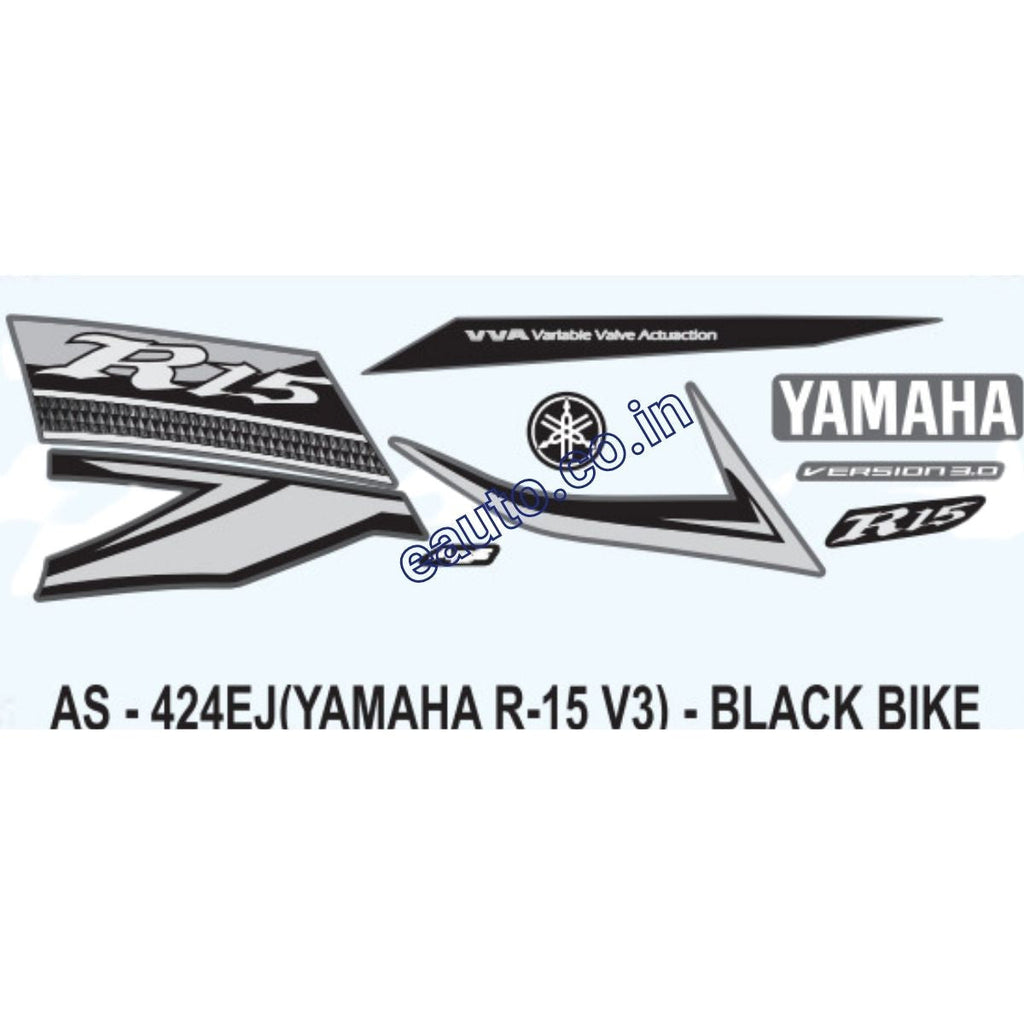 Graphics Sticker Set for Yamaha R15 V3 | ABS | Black Vehicle | Black Sticker | Both Sides