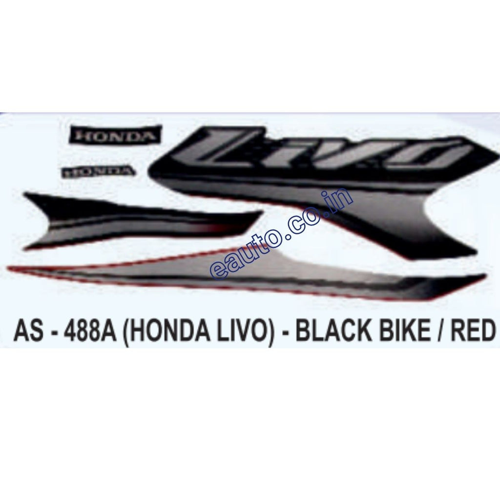 Graphics Sticker Set for Honda Livo | Black Vehicle | Red Sticker | Both Sides