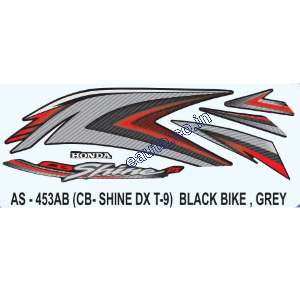 Graphics Sticker Set for Honda CB Shine DX | Type 9 | Black Vehicle | Grey Sticker | Both Sides