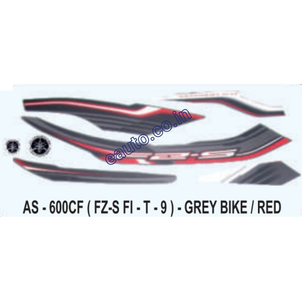 Graphics Sticker Set for Yamaha FZ-S FI | Type 9 | Grey Vehicle | Red Sticker | Both Sides