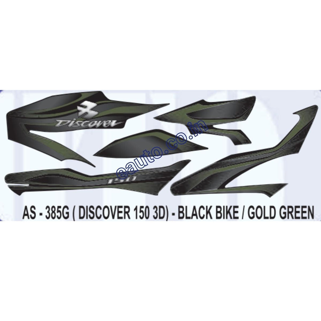 Graphics Sticker Set for Bajaj Discover 150 | 3D | Black Vehicle | Gold | Green Sticker | Both Sides