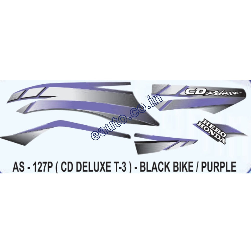 Graphics Sticker Set for Hero Honda CD Deluxe | Type 3 | Black Vehicle | Purple Sticker | Both Sides